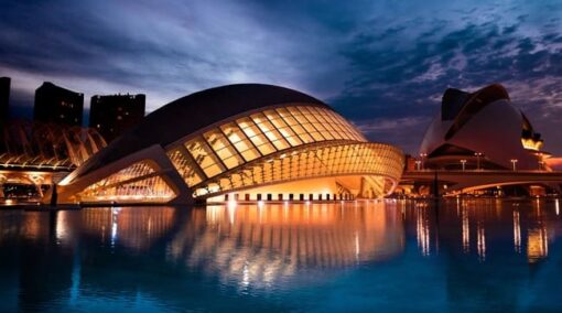 Kunst- og vitenskapsbyen i Valencia, tegnet av arkitekt Santiago Calatrava. - Valencia – 825.000 innbyggere. Kjent for sine historiske nabolag, Kunst- og vitenskapsbyen og strender.